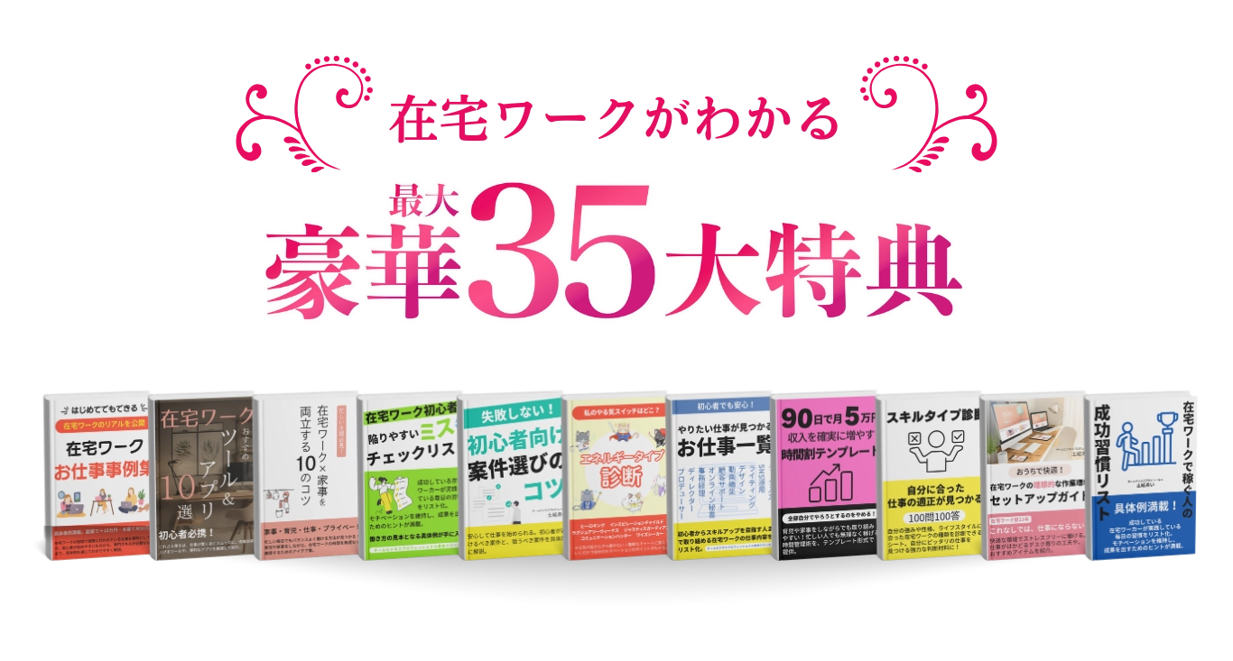 在宅ワークお仕事事例集在宅ワークの現場で実際に行われている仕事を事例として紹介。初心者が始めやすいものから、専門スキルが必要なものまで、具体例を通じてわかりやすく解説。 -